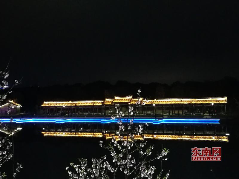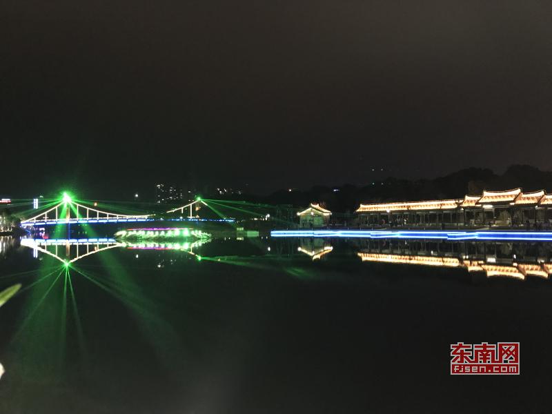 璀璨绚丽灯光扮靓莆田夜景 东南网莆田2月22日讯(本网记者 王龙风)火树银花,灯水交融,流光溢彩,夜色辉煌。春节期间正式亮灯的莆田泗华溪、绶溪公园华丽夜景,成为许多市民夜间游玩不可错过的绝佳去处,每天都有许多市民沿着泗华古桥—星光隧道—新延寿桥底—过溪桥—延寿古桥,这一“夜游画廊”,一睹两溪公园璀璨夜景的风采。 正月初六(2月21日),是春节长假的最后一个夜晚,东南网记者来到泗华溪、绶溪公园看到,处处色彩斑斓,一片灯火辉煌景象。走进公园内,一路上游人如织,来来往往好不热闹。色彩变换炫动的星光隧道,更是吸引了许多市民前来穿梭体验,许多小孩兴奋地追逐着地面上游动的“鱼儿”。