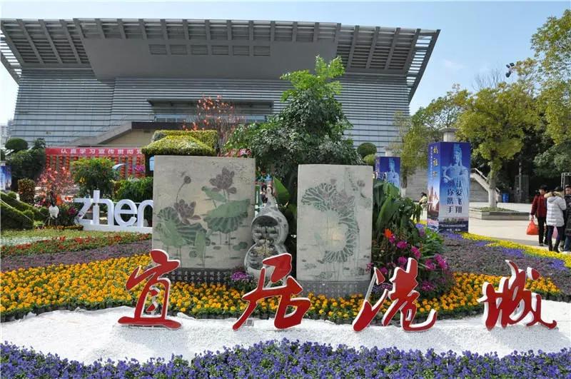 市政府北广场迎春花坛占地面积约600平方米,高6米,长20米,宽28米。