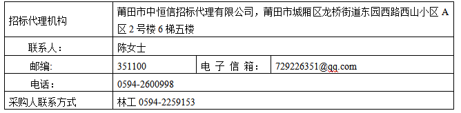 3.需要落实的政府采购政策:进口产品,适用于(本项目)。节能产品,适用于(本项目),按照最新一期节能清单执行。环境标志产品,适用于(本项目),按照最新一期环境标志清单执行。信息安全产品,适用于(本项目)。小型、微型企业符合财政部、工信部文件(财库〔2020〕46号),适用于(本项目)。监狱企业,适用于(本项目)。促进残疾人就业 ,适用于(本项目)。信用记录,适用于(本项目),按照下列规定执行:(1)投标人应在(填写招标文件要求的截止时点)前分别通过“信用中国”网站(www.creditchina.gov.cn)、中国政府采购网(www.ccgp.gov.cn)查询并打印相应的信用记录(以下简称:“投标人提供的查询结果”),投标人提供的查询结果应为其通过上述网站获取的信用信息查询结果原始页面的打印件(或截图)。(2)查询结果的审查:①由资格审查小组通过上述网站查询并打印投标人信用记录(以下简称:“资格审查小组的查询结果”)。②投标人提供的查询结果与资格审查小组的查询结果不一致的,以资格审查小组的查询结果为准。③因上述网站原因导致资格审查小组无法查询投标人信用记录的(资格审查小组应将通过上述网站查询投标人信用记录时的原始页面打印后随采购文件一并存档),以投标人提供的查询结果为准。④查询结果存在投标人应被拒绝参与政府采购活动相关信息的,其资格审查不合格。 4.投标人资格要求:详见招标文件第二章投标人须知。 5.时间安排(北京时间)和获取招标文件方式: 5.1获取招标文件 时间:2023年 03月02 日~2023 年 03 月 22 日(提供期限自本公告发布之日起不得少于5个工作日)。 5.2获取招标文件方式: 5.2.1邮件方式报名:即投标人将报名人全称、地址、电话、传真、联系人、手机、E-mail、报名项目编号、项目名称等发邮件([email protected])至我司,我司再将招标文件通过快递或发电子邮件方式发送给报名人。 5.2.2招标文件售价为0元/本(含电子文档)。 5.3投标文件递交截止时间和开标时间:2023 年 03 月 23日 15 ∶ 00 (北京时间),逾期收到的或不符合规定的投标文件将被拒绝。 6.地点安排: 6.1开标地点:莆田市城厢区龙桥街道东园西路西山小区A区2号楼6梯五楼。 6.2投标文件递交地点:莆田市城厢区龙桥街道东园西路西山小区A区2号楼6梯五楼。投标文件由招标代理公司工作人员接收。 6.3投标咨询及来往信函地点:莆田市城厢区龙桥街道东园西路西山小区A区2号楼6梯五楼(莆田市中恒信招标代理有限公司)。 7.投标人对本次招标活动事项提出疑问的,将问题以书面形式提交到莆田市中恒信招标代理有限公司(公休、节假日不予接收),具体要求见招标文件投标人须知。 8.我司将在中国政府采购网、中国采购与招标网、莆田市住房和城乡建设信息网、探花社区 招标采购网、探花社区 官网发布本项目的招标公告、更正公告、答疑纪要、评标结果等信息,请投标人及时关注,投标人若自己没有在以上网站上查询相关更正通知和答疑纪要等信息而影响投标的,投标人自行承担相关责任。 9.公告期限 9.1招标公告的公告期限:自本公告发布之日起5个工作日。 10.莆田市中恒信招标代理有限公司指定账户: